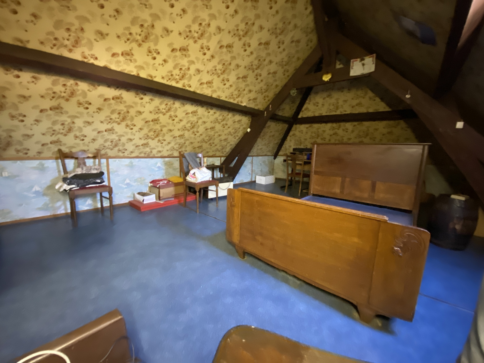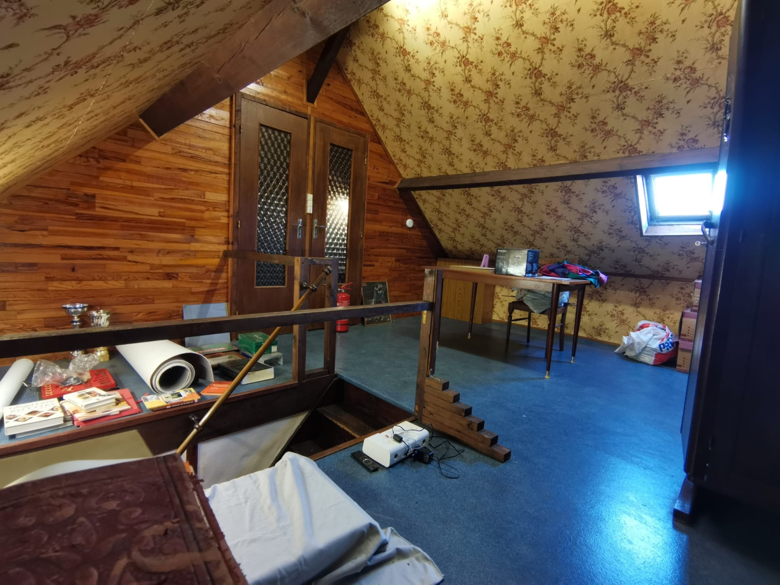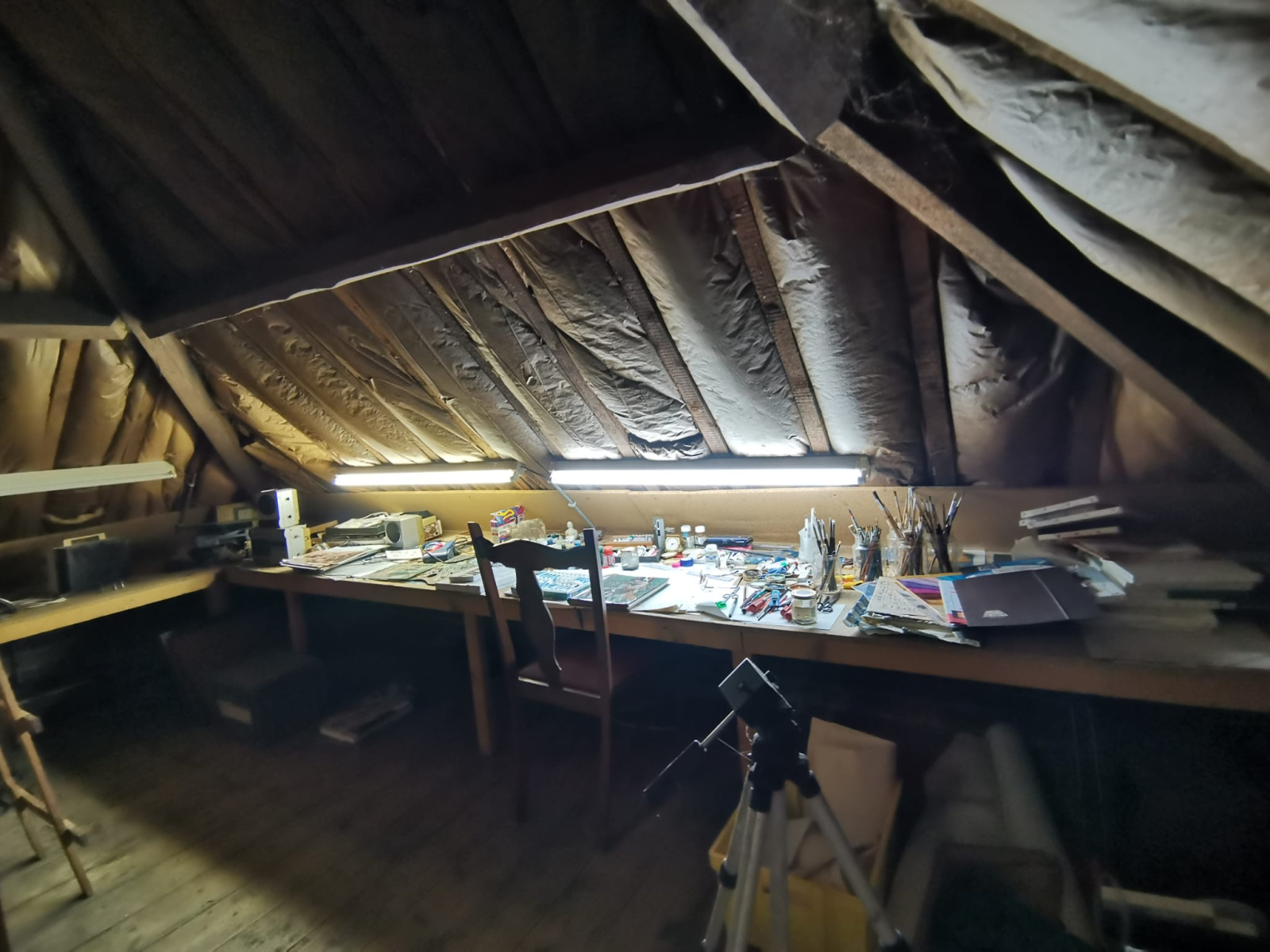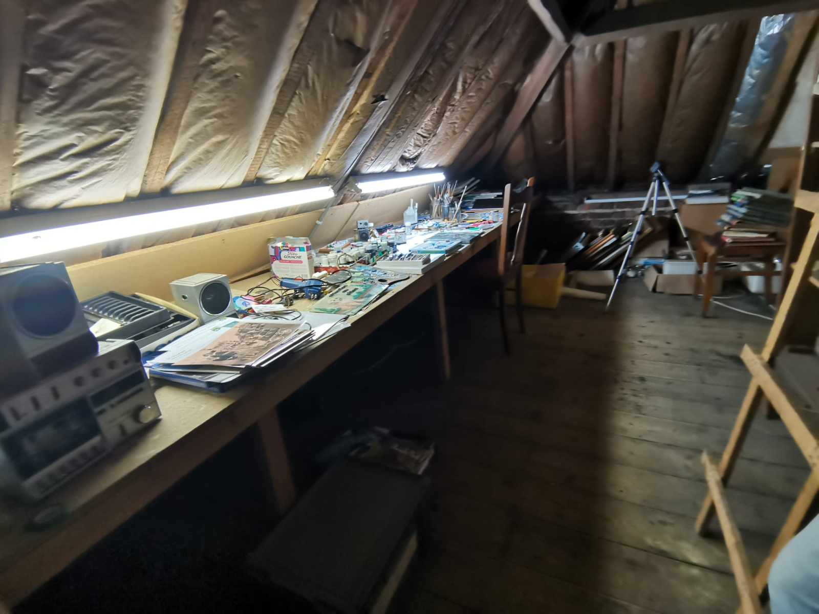 Au premier étage: un beau palier, une chambre mansardée avec de beaux volumes et un atelier mansardé.