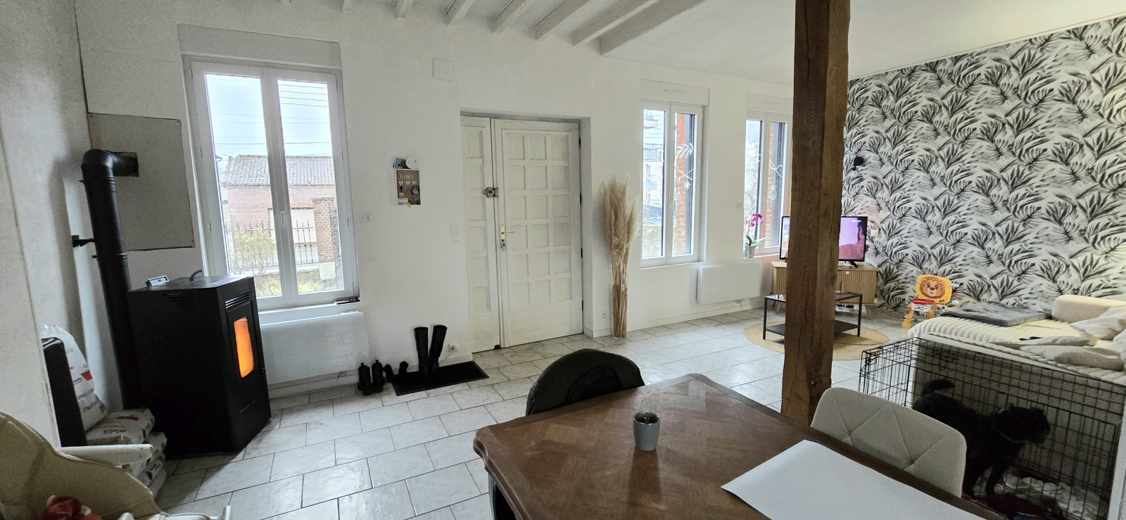 Chauffage par poele à granulés et convecteurs électriques.