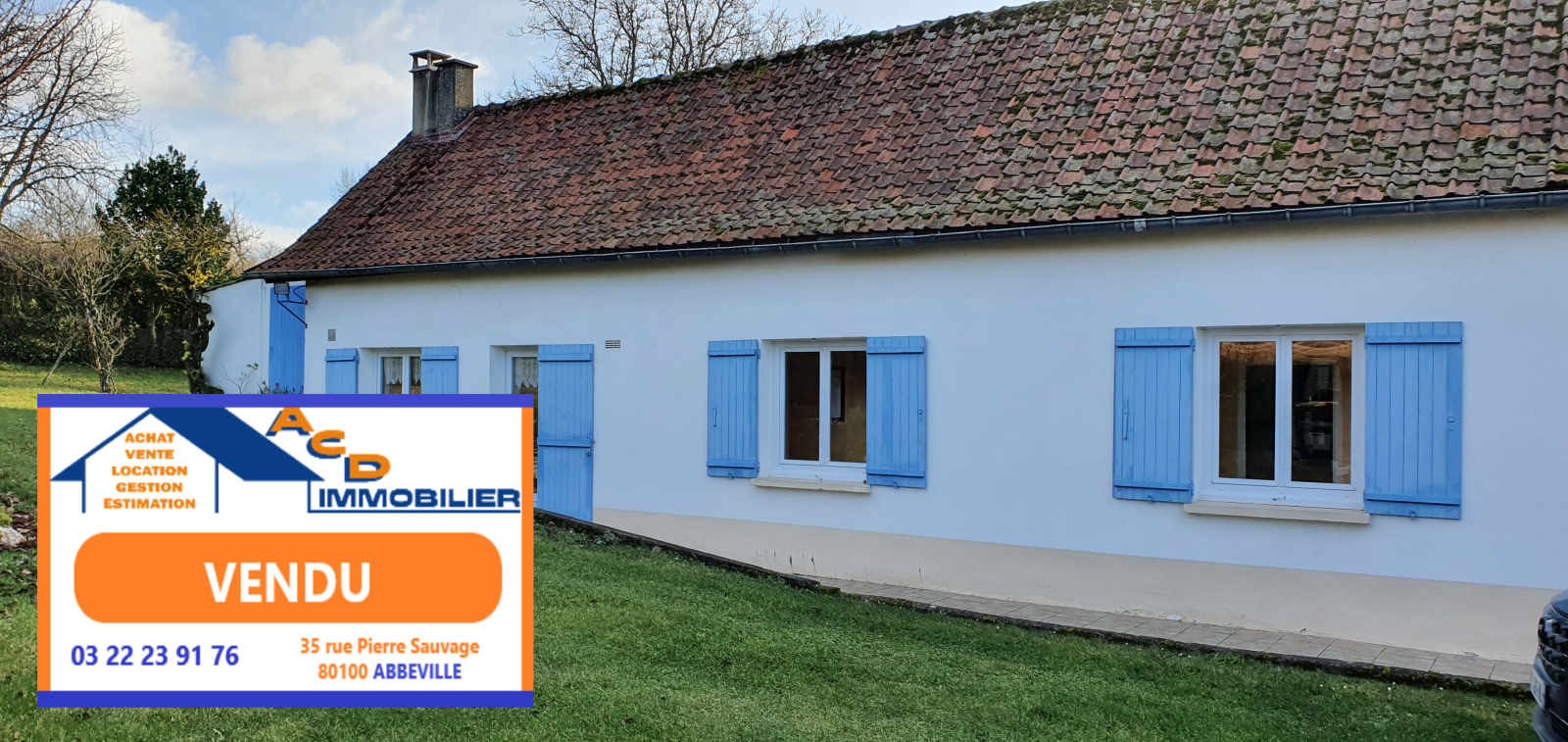 PROCHE ABBEVILLE : Laurent DELATTRE, votre agent ACD IMMOBILIER vous propose cette charmante longère, mitoyennne d'un coté, comprenant :