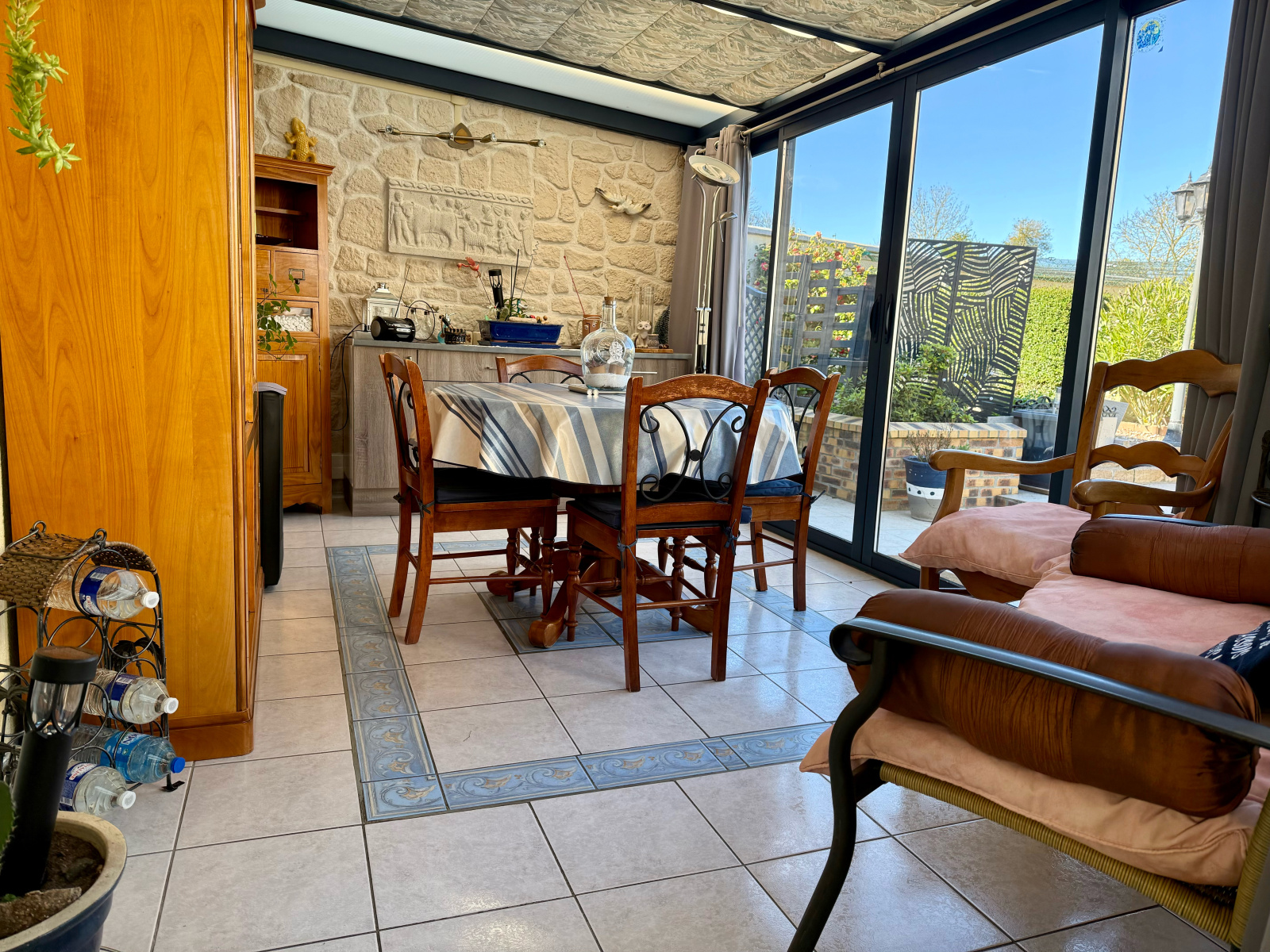 Au rez-de-chaussée, l’entrée s’effectue par une véranda chauffée, offrant un espace de vie lumineux et exploitable toute l’année. Elle dessert une cuisine aménagée et semi-équipée, ainsi qu’un séjour d’environ 30 m² aux volumes confortables.Une chambre avec un très beau dressing complète cet espace, véritable atout grâce à sa surface généreuse et à ses capacités de rangement. Une salle de douche et un WC indépendant viennent parfaire ce niveau, permettant une vie de plain-pied.