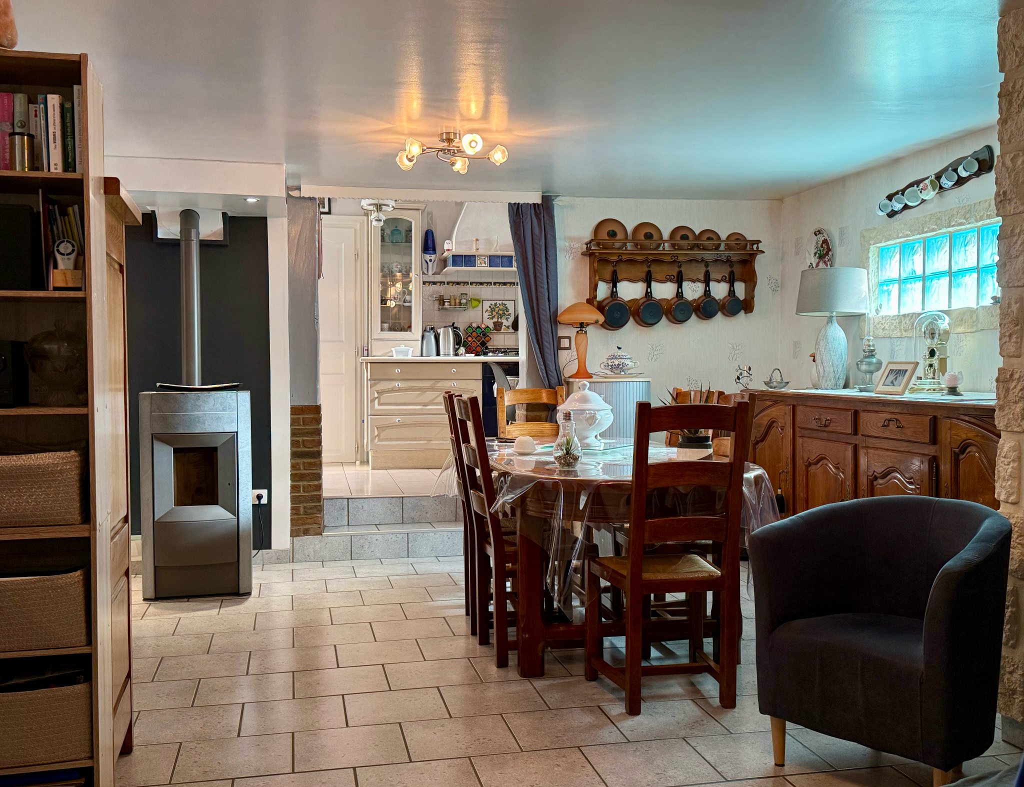 Le chauffage est assuré par un poêle à granulés, garantissant confort thermique et maîtrise des consommations.