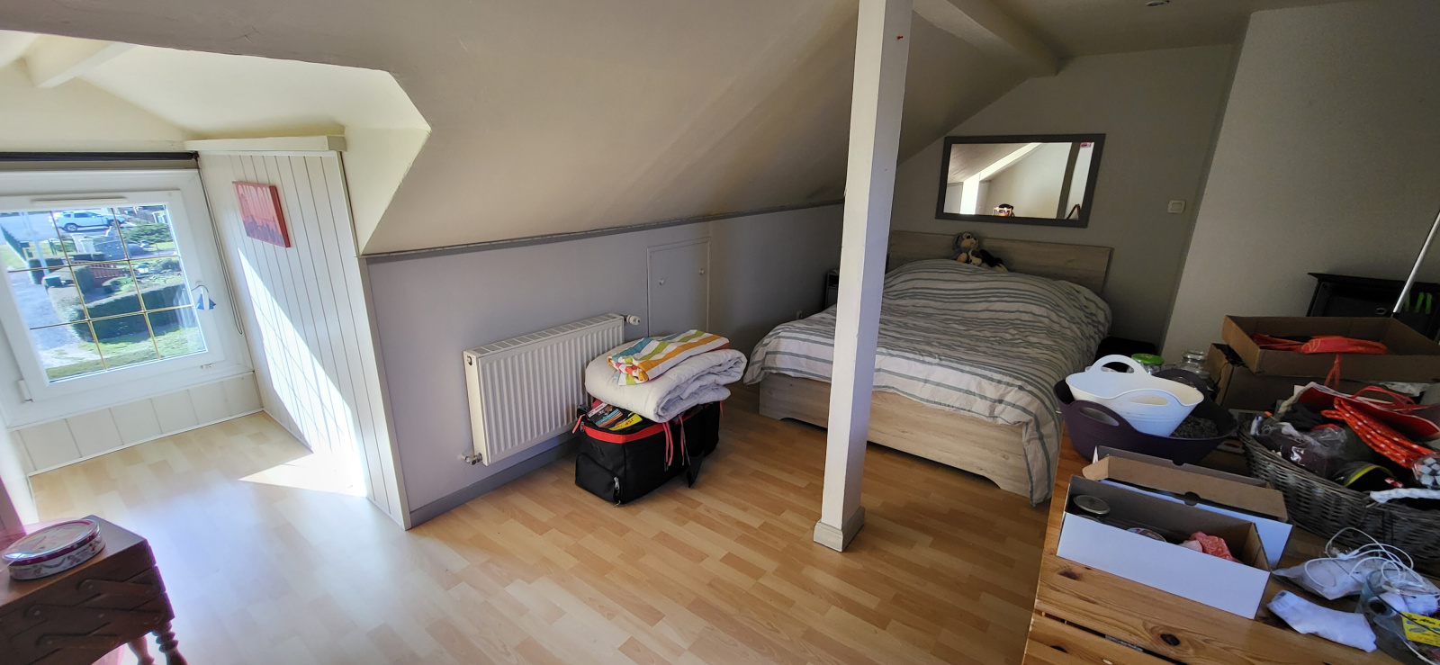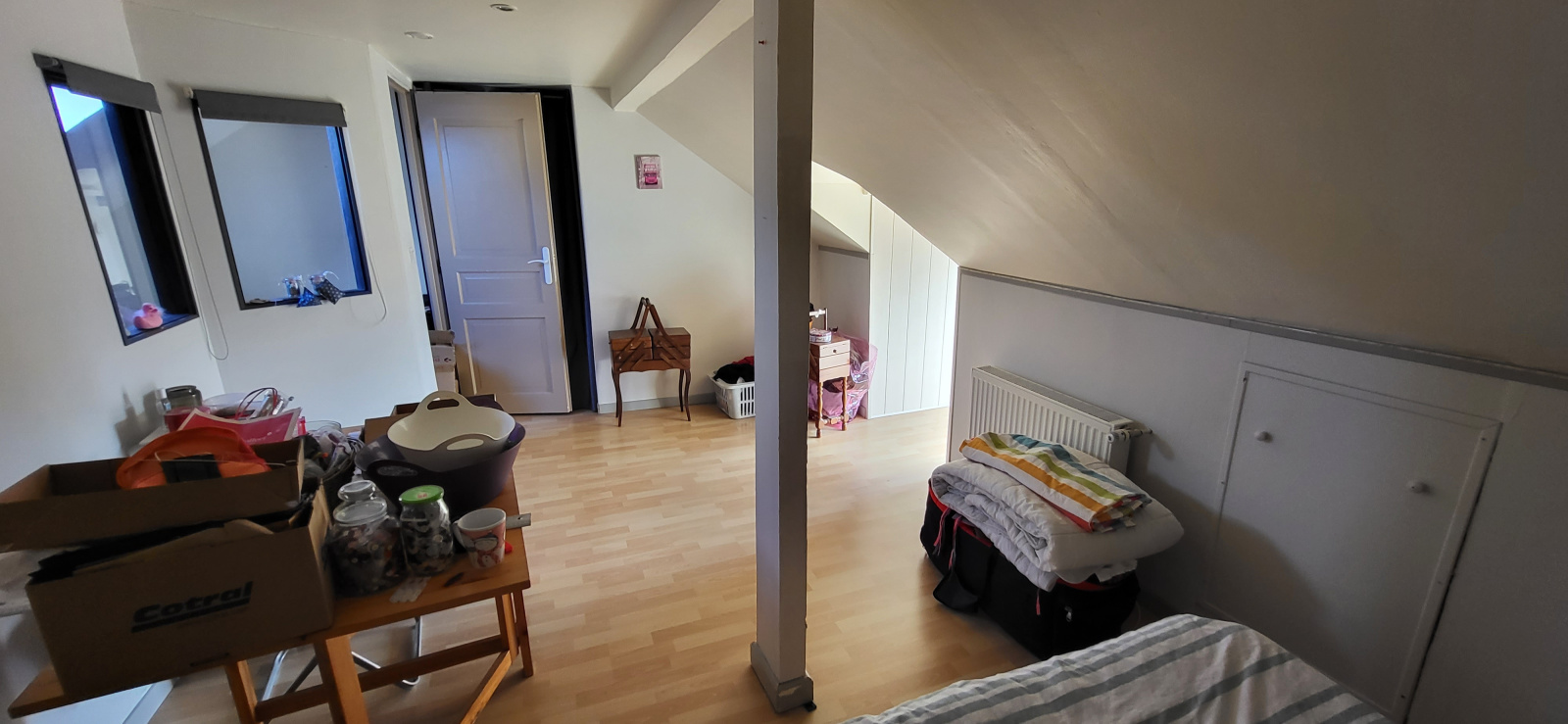 - à l’étage : palier/couloir, deux chambres.