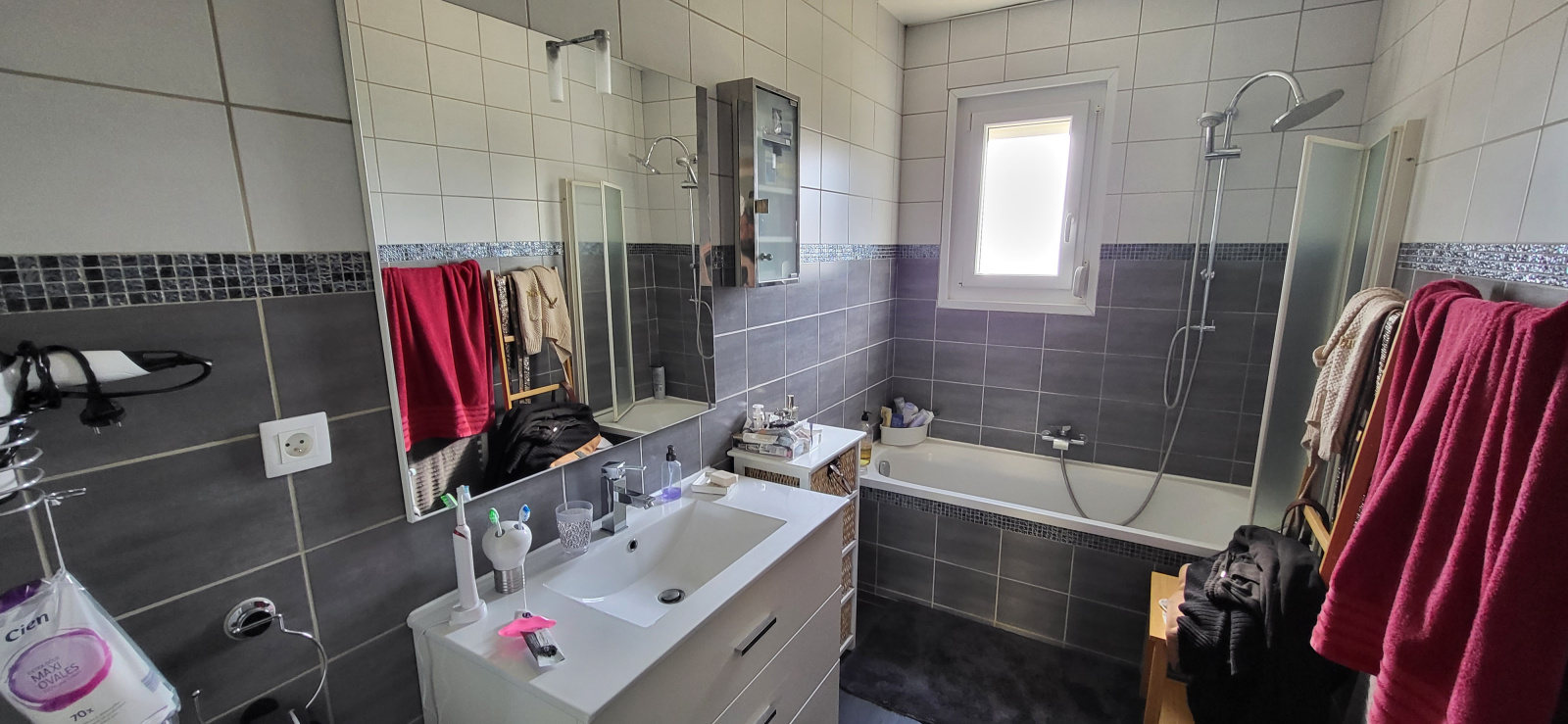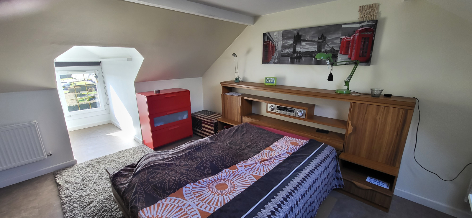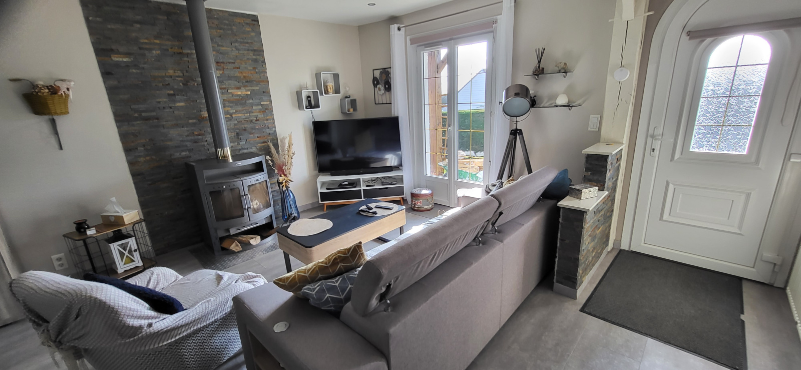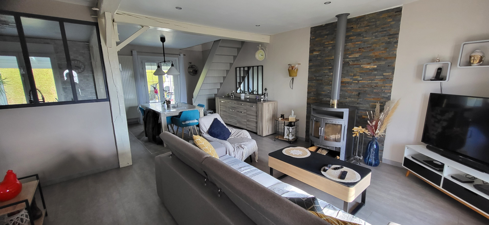 Chauffage par pompe à chaleur et poêle à bois. Double vitrage.